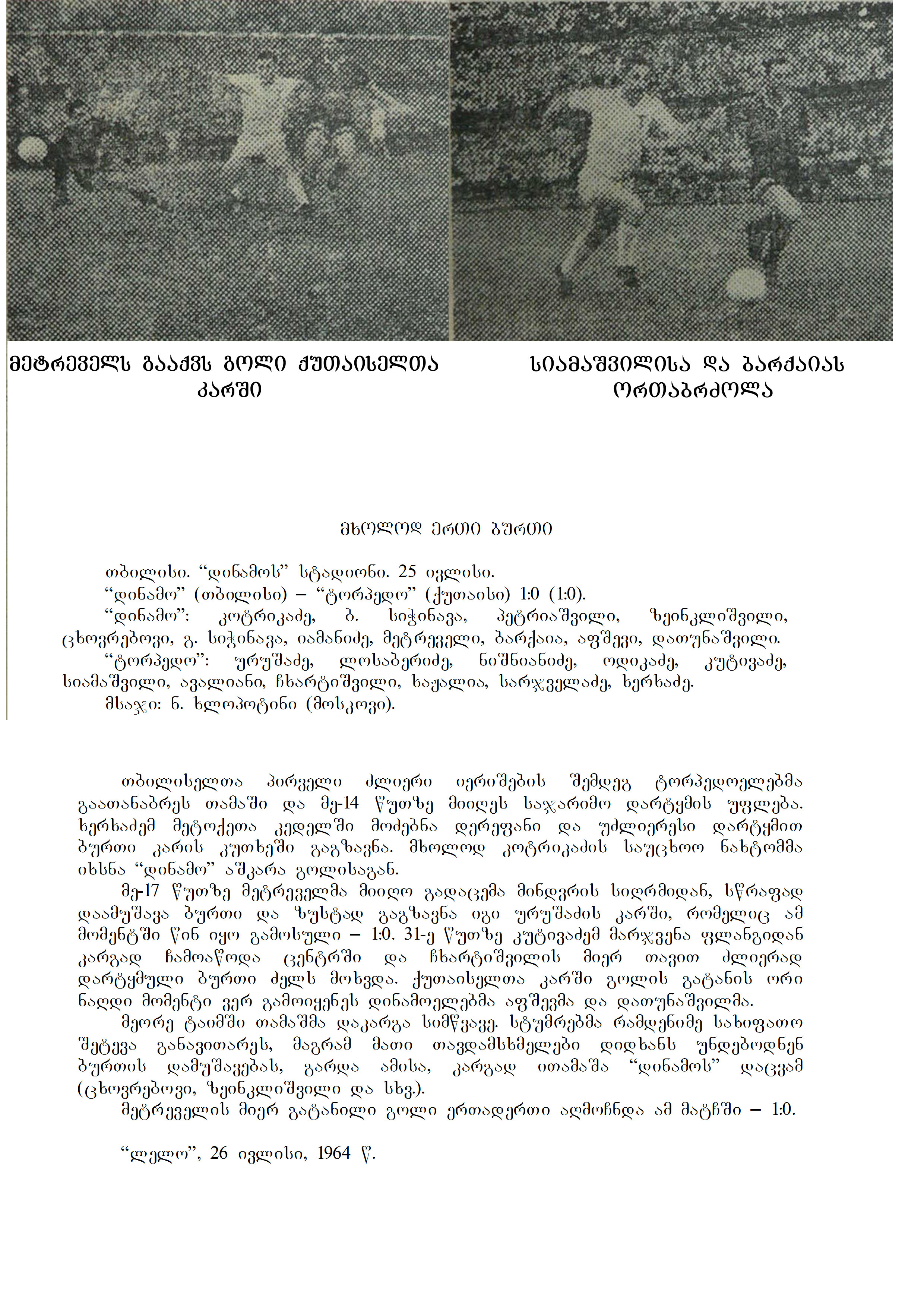 | Other Titles: | “დინამო” (თბილისი) - “ტორპედო” (ქუთაისი) 1:0 (1:0). |